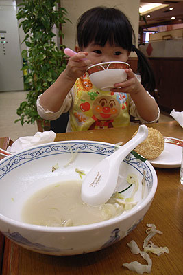 とても気に入ったようで、レンゲを使って積極的に自分でよそって食べる。