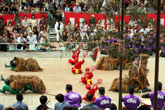 日本の獅子舞と違い、毛がもじゃもじゃしててカラフル。