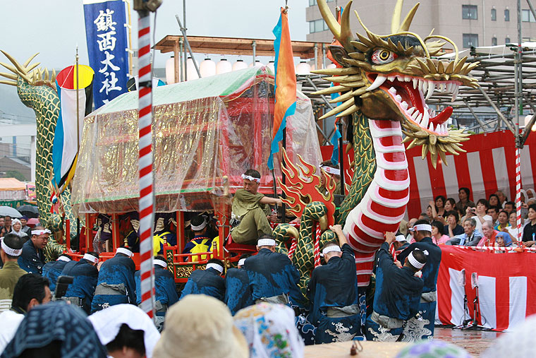 もう最後の方はかなりすごい雨。 なんでも、龍には雨乞い効果があるとのことで、 桟敷席では傘をさすわけにもいかないので、 正直、すごい大変だったけど、珍しい光景を見ることもできたので ちなみに私の持ってるEOS30Dというカメラは防水ではないのだが、